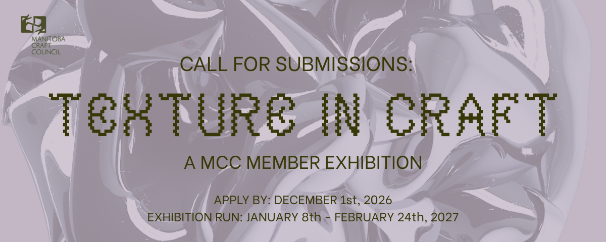 The theme for the 2027 Manitoba Craft Council Member Show is Texture in Craft! Show us the rough, fuzzy, prickly, bumpy, and squishy things you’re making in your studio and they will be displayed in a group exhibition at the C2 Centre for Craft.
